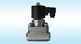 當(dāng)線圈斷電時,先導(dǎo)閥芯靠彈簧復(fù)位,先導(dǎo)孔打開,閥上腔卸壓,活塞靠下腔介質(zhì)壓力推動,電磁閥打開。