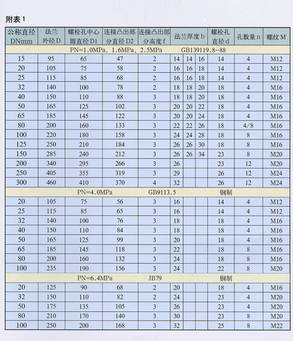 法蘭參數(shù)